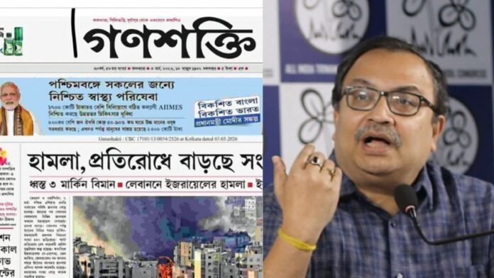 যেখানে দেখা যাচ্ছে, সিপিএমের মুখপত্র গণশক্তির (Ganashakti) প্রথম মাতার ঠিক মাথায় প্রধানমন্ত্রী নরেন্দ্র মোদীর ছবি সহ “বিকশিত বাংলা, বিকশিত ভারত”-এর বিজ্ঞাপন। এই নিয়ে কুণাল ঘোষের কটাক্ষ, “গণশক্তি। বিজেপির প্রচারের দায়িত্বে। বিজেপিকে প্রমোট করতে। কোনো কমরেড/রামরেড বলে উঠবেন, ওটা বিজ্ঞাপন। কাগজে নেয়। তাদের বলি, বাণিজ্যিক কাগজ আর পার্টির মুখপত্রে তফাত আছে। পার্টি যদি তার নীতিতে থাকে, তাহলে টাকার জন্য এভাবে প্রথম পাতার মাথার অংশ বিক্রি করতে পারে না।”