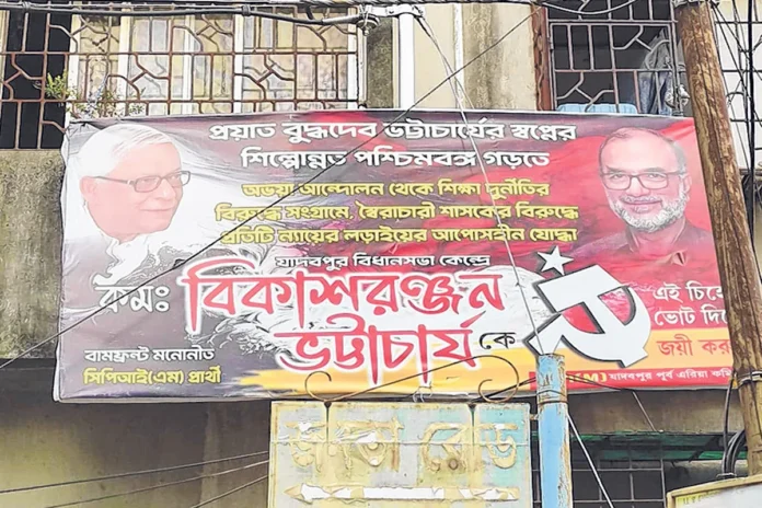 দুহাজার ছাব্বিশের চৈত্রে লাল পতাকা লাগানো প্রচার গাড়ি ঘুরছে কলোনির অলিগলিতে। আসন্ন বিধানসভা ভোটের আগুনে মাইক বাজাচ্ছে পুরনো রেকর্ড: “এ লড়াই লড়তে হবে। এ লড়াই জিততে হবে..।” কিন্তু জিজ্ঞেস করছে সাধারণ মানুষ, “লড়ছেটা আসলে কে?”প্রকৃতপক্ষে, যিনি কাস্তে-হাতুড়ি-তারা চিহ্নে লড়ছেন, সেই বিকাশরঞ্জন ভট্টাচার্যর ছবি যাদবপুরে তেমন চোখে পড়ে না। কারণও রয়েছে স্পষ্ট। প্রথম দফার প্রচারে একাধিক জায়গায় প্রশ্নের মুখে পড়েছেন তিনি। আড়ালে মানুষ ডাকছেন চাকরিখেকো নামে। সম্প্রতি নয়াবাদে তার পথসভা ভেস্তে যাওয়াও সেই বিতর্কেরই অংশ।