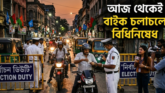 কমিশনের নির্দেশ অনুযায়ী, ভোটের দিন সকাল ৬টা থেকে সন্ধ্যা ৬টা পর্যন্ত সাধারণ মানুষ বাইক ব্যবহার করতে পারবেন। এই সময়ের মধ্যে ভোট দিতে যাওয়া, জরুরি চিকিৎসা বা পারিবারিক প্রয়োজনে যাতায়াতে কোনও বাধা নেই। তবে নজরদারি থাকবে কড়া।অফিসগামীদের ক্ষেত্রেও ছাড় রাখা হয়েছে। প্রয়োজনীয় পরিচয়পত্র সঙ্গে থাকলে বাইক নিয়ে কর্মস্থলে যাওয়া যাবে। একইভাবে খাবার সরবরাহকারী সংস্থার কর্মীরাও যেমন সুইগি, জোম্যাটো পরিষেবা চালু রাখতে পারবেন, তবে তাদেরও বৈধ আইডি কার্ড বহন করা বাধ্যতামূলক। ভোটের আগের দিন থেকেই কড়াকড়ি আরও বাড়বে। নির্দেশ অনুযায়ী, ভোটের ১২ ঘণ্টা আগে থেকে বাইকের পিছনে কাউকে বসানো যাবে না। অর্থাৎ পিলিয়ন রাইড সম্পূর্ণ নিষিদ্ধ থাকবে নির্দিষ্ট সময়ের জন্য।