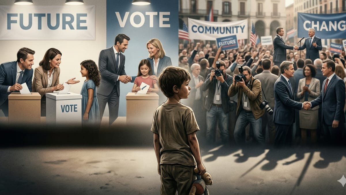 প্রচার আর বাস্তবের মধ্যে যে ফারাকটা বারবার সামনে আসে, এই ঘটনাগুলো সেই পুরোনো চিত্রকেই আবার নতুন করে চোখে আঙুল দিয়ে দেখিয়ে দেয়। বিজ্ঞাপনের পর্দায় যেমন নিষ্পাপ মুখ, হাসি, আর “ভবিষ্যতের গল্প” বাস্তব মাটিতে কিন্তু দৃশ্যটা অনেক সময় আরও প্রশ্নবিদ্ধ।নির্বাচনী প্রচারে প্রার্থীরা গ্রামে-শহরে গেলে অনেক ক্ষেত্রেই দেখা যায়, শিশুরা যেন এক ধরনের “দৃশ্যমান অংশ” হয়ে ওঠে।