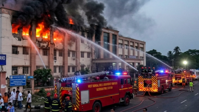 Aaj India Desk,পূর্ব বর্ধমান: পূর্ব বর্ধমানের নবাবহাট এলাকায় ১৯ নং জাতীয় সড়কের ধারে অবস্থিত একটি বেসরকারি হাসপাতালে সোমবার ভয়াবহ অগ্নিকাণ্ডের ঘটনা ঘিরে চাঞ্চল্য ছড়াল। দুপুরের দিকে হঠাৎ করেই হাসপাতালের একটি অংশ থেকে ধোঁয়া বের হতে দেখা যায়। মুহূর্তের মধ্যেই সেই আগুন দ্রুত ছড়িয়ে পড়ে হাসপাতালের একাধিক বিভাগে।