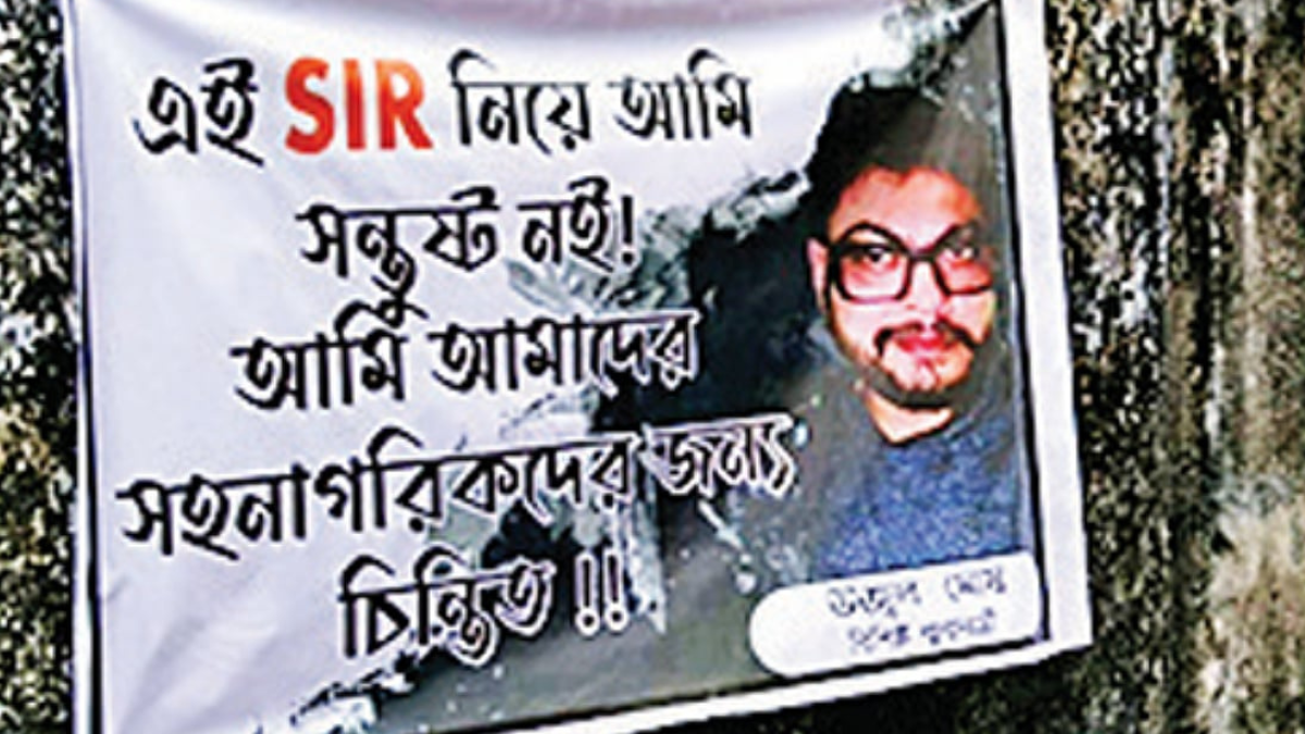 রবিবার শহরের একাধিক এলাকায় একই বার্তা নিয়ে ফ্লেক্স টাঙানো হয়েছে, যেখানে ভোটার তালিকা থেকে নাম বাদ পড়া নিয়ে উদ্বেগ জানানো হয়েছে। শহরের বিভিন্ন ওয়ার্ডে টাঙানো ফ্লেক্সগুলিতে লেখা : ‘I am not satisfied with this SIR! I am worried about our fellow citizens!’