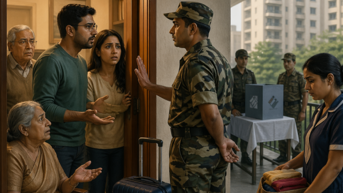 কমিশনের (Election Commission) নতুন বিজ্ঞপ্তি অনুযায়ী, কোনও আবাসন কমপ্লেক্সে যদি ভোটকেন্দ্র স্থাপন করা হয়, তাহলে ভোটের ৪৮ ঘণ্টা আগে সেখানে “নন-ভোটার”দের অবস্থান নিষিদ্ধ করা হবে। কমিশনের বিজ্ঞপ্তি আপাতদৃষ্টিতে তেমন ক্ষতিকর না মনে হলেও এই নিয়ম কার্যকর হওয়ায় কলকাতাসহ শহুরে জীবনে বহু বাসিন্দা ও পরিবারের উপর সরাসরি প্রভাব পড়তে শুরু করেছে।