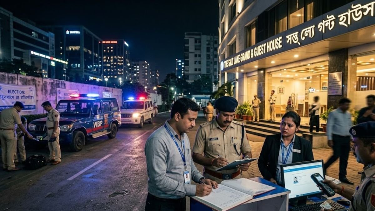 কলকাতা: দ্বিতীয় দফার ভোটগ্রহণে (West Bengal Assembly Election 2026) মাঝে বাকি মাত্র ১ দিন। নিরাপত্তা নিশ্চিত করতে কোনোরকম খামতি রাখা যাবে না, স্পষ্ট জানিয়ে দিয়েছে নির্বাচন কমিশন। ইতিমধ্যেই বাইকে গ্রুপ রাইডিং-এ নিষেধাজ্ঞার নির্দেশ দিয়েছে কলকাতা হাইকোর্ট। ৪৮ ঘন্টা আগে থেকে বন্ধ মদের দোকান। এবার বিভিন্ন হোটেল, গেস্টহাউস গুলিতেও তল্লাশি অভিযান চালাচ্ছে পুলিশ। জানা গিয়েছে, সোমবার বিধাননগরের একাধিক হোটেল ও গেস্টহাউসে হানা দেয় পুলিশ বাহিনী। হোটেলের গেস্ট লিস্ট খতিয়ে দেখার পাশাপাশি কর্মচারীদের সঙ্গেও কথাবার্তা বলেন পুলিশ কর্তারা।