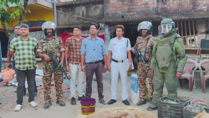 উত্তর কাশীপুর থানার মাঝেরহাট এলাকায় একটি পরিত্যক্ত বাড়ি থেকে বোম নিষ্ক্রিয়করণ দলের সহায়তায় পুলিশ ৭৯ টি বোমা সহ প্রায় ৩.৩৭ কেজি গান পাউডার, ১.৬১ কেজি সালফার, জুটের দড়ি এবং রোল ক্যাপের প্যাকেট বাজেয়াপ্ত করে।