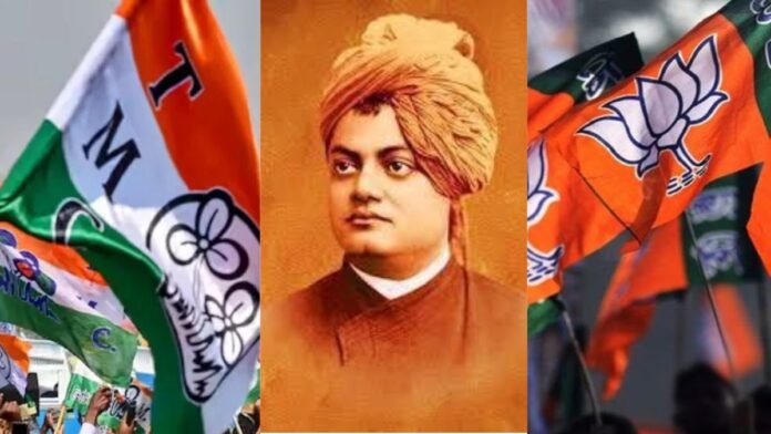 কলকাতা: স্বামী বিবেকানন্দের (Swami Vivekananda) জন্মদিনে আদর্শ আর দর্শনের বদলে রাজনীতির পোস্টারই যেন প্রধান আকর্ষণ। একদিকে ব্যানারে লেখা ‘স্বাগতম যুবরাজ’, অন্যদিকে স্বামীজির নামে জুড়ে দেওয়া স্লোগান—‘গর্ব করে বলো আমি হিন্দু’। জন্মদিনের শ্রদ্ধা পরিণত হল রাজনৈতিক তরজায়। মানুষের কথা বলা সাধকের স্মৃতিতেও আজ বিভাজনের ভাষা, আদর্শের জায়গায় দলীয় প্রতিযোগিতা—স্বামীজির জন্মদিনেও রাজনীতি নিজের ছায়া ফেলতে ছাড়ল না।