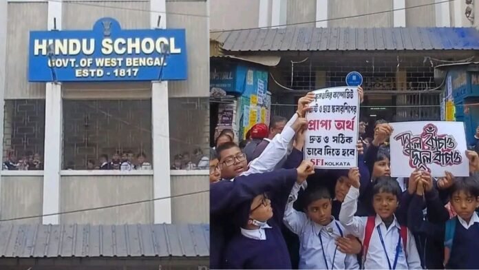 স্নেহা পাল, কলকাতা: শিক্ষক-সঙ্কটের (Teacher shortage) জেরে চরম সমস্যায় পড়েছে কলকাতার ২০০ বছরের ঐতিহ্যবাহী সরকার পোষিত হিন্দু স্কুল (Hindu School)। পর্যাপ্ত শিক্ষক না থাকায় নিয়মিত ক্লাস করানো কার্যত অসম্ভব হয়ে উঠেছে বলে অভিযোগ। এই পরিস্থিতির প্রতিবাদে শুক্রবার স্কুল চত্বরে পথে নামে বামপন্থী ছাত্র সংগঠন SFI, সাথে পড়ুয়া ও অভিভাবকদের একাংশও অংশ নেন এই বিক্ষোভে।