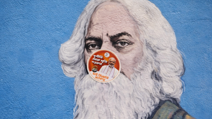 কবিগুরুর নাকে পরিবর্তনের স্টিকার, ফের বিতর্কের মুখে বিজেপি !