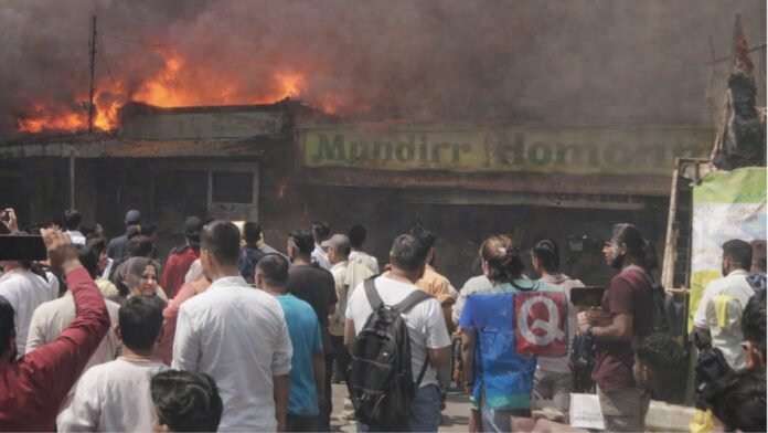 উত্তর ২৪ পরগনার মধ্যমগ্রামে একটি সেতুর পাশের বাজার এলাকায় হঠাৎই ভয়াবহ আগুন (Fire) লাগে। জানা গিয়েছে, প্রথমে একটি দোকান থেকে ধোঁয়া বেরোতে দেখা যায়, এরপর মুহূর্তের মধ্যে আগুন ছড়িয়ে পড়ে একাধিক দোকানে।