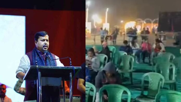 কলকাতা: অযোধ্যার রামমন্দিরের আদলে তৈরি মন্ডপ, শিল্প-শহর দুর্গাপুরের রাস্তায় পোস্টার- হোর্ডিং এ ছয়লাপ। রাজীব গান্ধী স্মারক ময়দানে বাচ্চাদের জন্য সম্পূর্ণ বিনামূল্যে জয়রাইড, আতসবাজির প্রদর্শনী, মোনালি ঠাকুরের গান! এতকিছু সত্ত্বেও ভরল না দর্শকাশন। বিজেপির সদ্য মনোনীত সর্বভারতীয় সভাপতি নিতিন নবীনের (Nitin Nabin) ভোটমুখী পশ্চিমবঙ্গ সফরের প্রথম দিনের শো কার্যত ‘ফ্লপ’! মঙ্গলবার সন্ধ্যায় দুর্গাপুরের কমল মেলায় ফাঁকা পড়ে রইল চেয়ার।