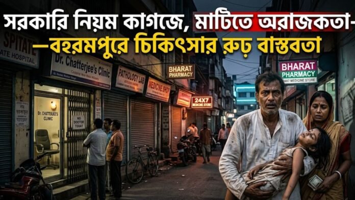 মুর্শিদাবাদের সদর শহর বহরমপুর (Berhampore)। গত দুই দশকে ঐতিহাসিক এই শহরের চেহারা আমূল পাল্টেছে, তা বলাই বাহুল্য। পুরনো সিনেমাহল উঠে গিয়ে এখন তার জায়গা নিয়েছে মাল্টিপ্লেক্স! পাড়ার মুদির দোকানী এখন মাছি তাড়ান! নামজাদা প্রায় সমস্ত বড় সুপার মার্কেট এখন বহরমপুরের অলিগলিতে! শপিং মল, নামীদামী ব্র্যান্ডের জামাকাপড় থেকে ইলেকট্রনিক্স, গয়নাগাটি সবকিছুতেই বড় শহরের ছাপ। রোগ বালাইতেও পুরো মুর্শিদাবাদ জেলার ভরসা এই বহরমপুর (Berhampore)। সেই ভোরবেলা থেকে জেলার বিভিন্ন প্রান্ত থেকে শহরে ভিড় করতে থাকেন রোগীরা। মুর্শিদাবাদ মেডিক্যাল কলেজ সংলগ্ন চত্বর, লালদিঘি, রানিবাগান-এর মত এলাকাগুলিতে ব্যাঙের ছাতার মত গজিয়েছে প্যাথ ল্যাব থেকে শুরু করে ডাক্তারদের চেম্বার! কোথাও কোথাও ভোর ৫-৬ টা থেকে রোগীর নাম লেখানর কাজ শুরু হয়।