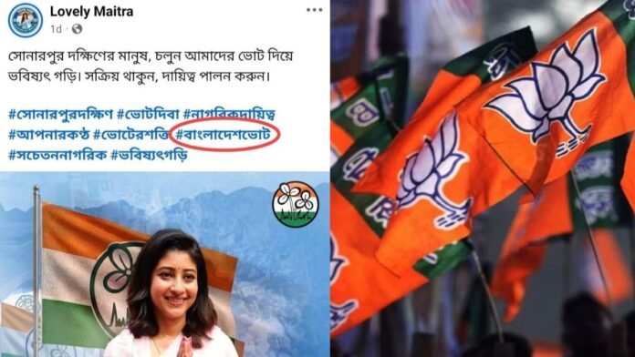 লাভলি মিত্রর পোস্টকে হাতিয়ার করে ময়দানে নেমে পড়েছে বিজেপি। বঙ্গ বিজেপির এক্স হ্যান্ডেলে পাল্টা পোস্টে তৃণমূল প্রার্থী লাভলি মিত্রকে (Lovely Maitra) তুলোধোনা করা হয়। বিজেপির পোস্টটিতে লেখা হয়, “অত্যন্ত উদ্বেগজনক এক পদক্ষেপে, সোনারপুর দক্ষিণ কেন্দ্রের তৃণমূল প্রার্থী লাভলি মৈত্র তাঁর সোশ্যাল মিডিয়া পেজে #BangladeshVote (বাংলায়) হ্যাশট্যাগটি ব্যবহার করেছেন। এটি কেবল কোনো সাধারণ মন্তব্য নয়! এটি একটি বিপজ্জনক মানসিকতা এবং এক বৃহত্তর ষড়যন্ত্রের মুখোশ উন্মোচন করেছে।”