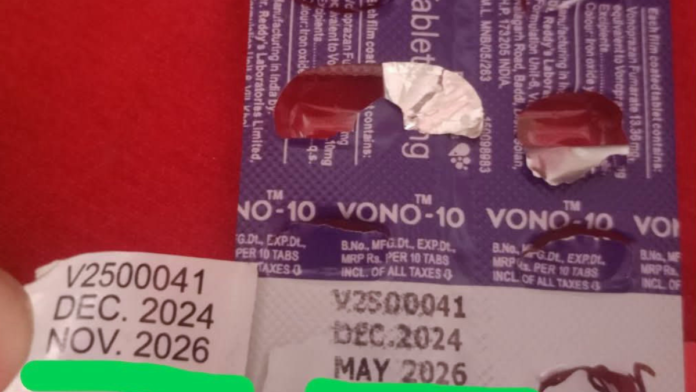 জয়নগরের একটি গ্রামে স্থানীয় ওষুধের দোকানে এক্সপায়ারি হয়ে যাওয়া ট্যাবলেটের প্যাকেটের উপর নতুন স্টিকার বসিয়ে মেয়াদ বাড়িয়ে বিক্রি করার অভিযোগ ওঠে। স্থানীয় সূত্র অনুযায়ী, সংশ্লিষ্ট দোকানে একটি ট্যাবলেটের প্যাকেটে আগে যেখানে ‘May 2026’ এক্সপায়ারি ডেট লেখা ছিল, সেখানে নতুন স্টিকার লাগিয়ে তা ‘November 2026’ করে দেওয়া হয়। (date expiration)
