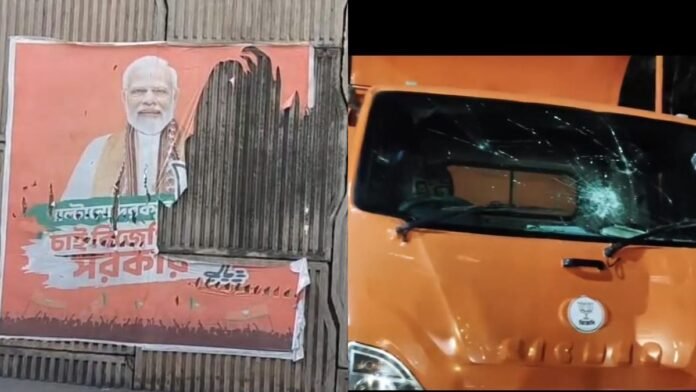 অন্যদিকে, কোচবিহার-২ ব্লকের মহিষবাথান এলাকায় পরিবর্তন যাত্রার (Parivartan Yatra) গাড়ি ভাঙচুরের অভিযোগ তোলেন বিজেপির কেন্দ্রীয় প্রতিমন্ত্রী সুকান্ত মজুমদার (Sukanta Majumdar)। এক্সে ছবি পোস্ট করে শাসকদলকে তুলোধোনা করেন সুকান্ত। তিনি লেখেন, “মুখ্যমন্ত্রী মমতা বন্দ্যোপাধ্যায়ের ব্যর্থ নেতৃত্বে পশ্চিমবঙ্গ এমন এক অরাজকতার সৃষ্টি হয়েছে যেখানে “অপরাধী” এবং “টিএমসি” শব্দ দুটি কার্যত সমার্থক হয়ে উঠেছে।”