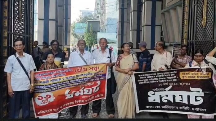 Aaj India Desk, কলকাতা: বকেয়া ডিএ (DA) -সহ একাধিক দাবিতে রাজ্যজুড়ে ধর্মঘট (Strike) ডাক দিল সংগ্রামী যৌথ মঞ্চ। শুক্রবার সকাল থেকেই ধর্মঘট সফল করতে জেলায় জেলায় প্রশাসনিক ভবন ও বিভিন্ন সরকারি দপ্তরের সামনে আন্দোলনে সামিল হয়।