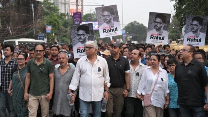 কলকাতা: অভিনেতা রাহুল অরুণোদয় বন্দ্যোপাধ্যায়ের (Rahul Arunoday Banerjee) অকাল প্রয়াণে শোকস্তব্ধ টলিপাড়া (Tollywood)। ‘ভোলে বাবা পাড় করেগা’ সিরিয়ালের শুটিং করতে গিয়ে তাজপুরে মারা যান অভিনেতা। তাঁর মৃত্যুর কারণ নিয়ে প্রায় ৩ রকম বয়ান সামনে উঠে এসেছে। যা নিয়ে তৈরি হয়েছে ব্যাপক ধোঁয়াশা। রাহুলের (Rahul Arunoday Banerjee) মৃত্যুর আসল কারণ সকলের সামনে আনতে পথে নেমেছিলেন ইন্ডাস্ট্রির অনেকেই। রাহুলের স্ত্রী প্রিয়াঙ্কা ইতিমধ্যেই ৫ জনের বিরুদ্ধে এফআইআর দায়ের করেছেন। বৃহত্তর আন্দোলনের ইঙ্গিত আগেই দিয়েছিল ইন্ডাস্ট্রির (Tollywood) একাংশ।